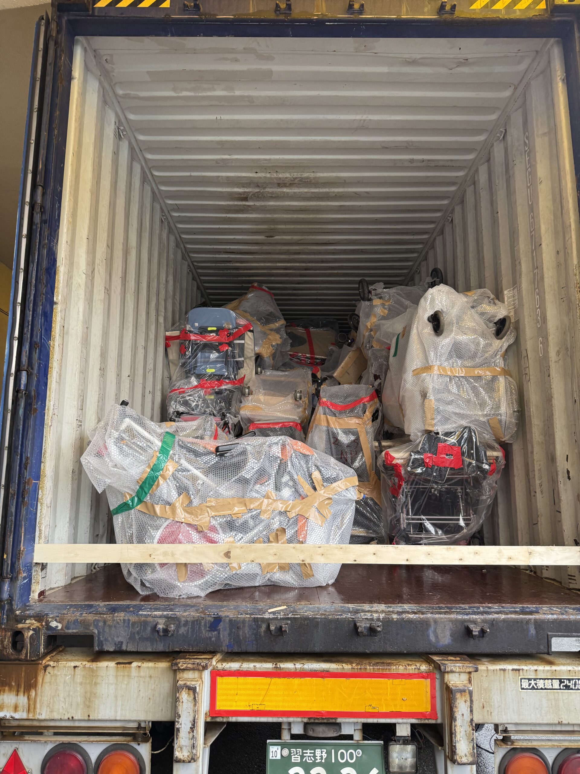 3月3日、タイチェンマイ行きの車いすをコンテナに積載しました。